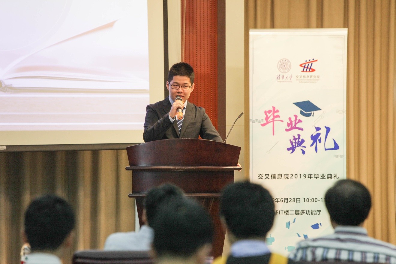 IIIS Commencement 2019 took place at the Lecture Hall, FIT Building, on June 28, 2019. Prof. Bin Yang, Vice President of Tsinghua University, Prof. Andrew Chi-Chih Yao, Dean of IIIS, Prof. Longbo Huang, Director of Tsinghua Xuetang Artificial Intelligence Program (Zhi Class), were invited to attend the commencement, with the presence of IIIS faculty, all the graduates of 2019 and some students' parents. Prof. Ran Duan, Director of YaoClass, hosted the commencement.