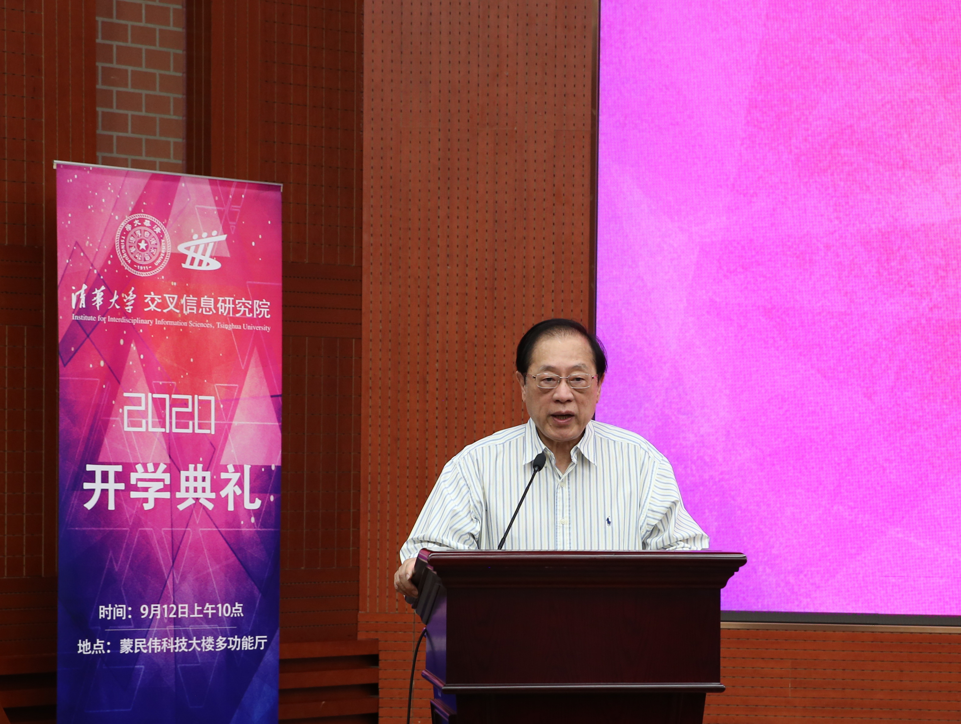 交叉信息院。姚先生感言交叉信息院从零开始,经过十年的发展,不断提升,有信心为同学们提供最好的教育。姚先生介绍了交叉信息院师资遴选的高标准,重点引荐本学期新入职的四位年轻教师,其中包括两位毕业于交叉信息院的院友。姚先生表示,交叉信息院的宗旨是激发同学们真正的潜能所在,希望同学们能在这里找寻高级的快乐,不单是个人的享受,而是更高级的对艺术的欣赏、对文化的品鉴、对社会的贡献、对中华民族的建设。姚先生寄语全体新生,期待大家在交叉信息院的学习生涯里,把人生素养提升到更高的层次。