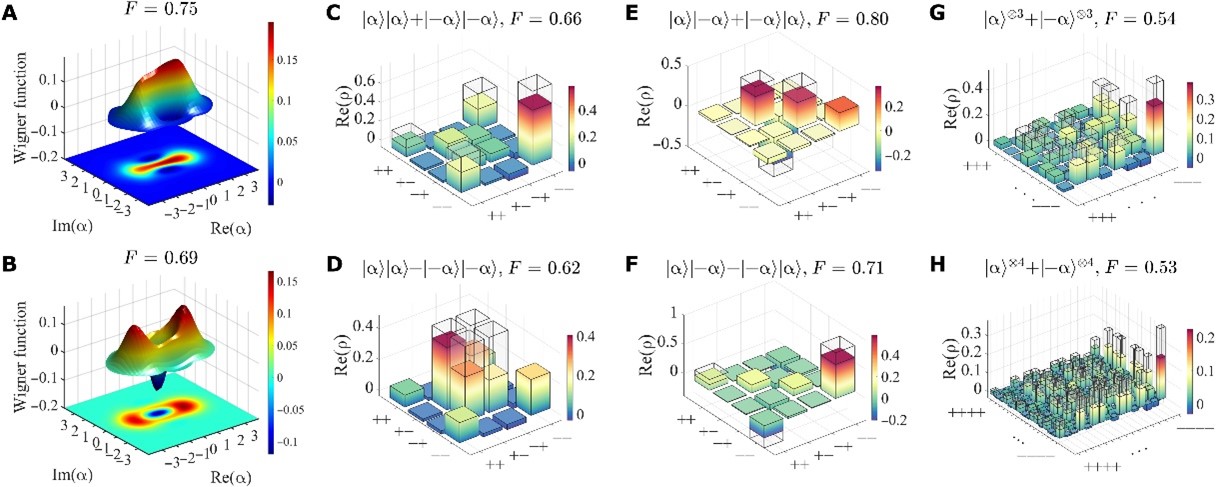 Recently, a team of Tsinghua researchers led by Prof. Luming Duan has successfully demonstrated a highly scalable approach to deterministically create flying multipartite Schrödinger cat states by reflecting coherent-state photons from a microwave cavity containing a superconducting qubit. The work marks a significant advance in implementing a series of quantum information processing protocols based on cat states. In a paper describing the work in the journal Science Advances, Tsinghua researchers perform full quantum state tomography on the cat states with up to four photonic modes and confirm the existence of quantum entanglement among them. They also witness the hybrid entanglement between discrete-variable states (the qubit) and continuous-variable states (the flying multipartite cat) through a joint quantum state tomography, and thus present a highly scalable scheme for the deterministic generation of multipartite cat states and provides an important enabling step to realize various quantum metrology or quantum information processing protocols based on continuous-variable cat states.