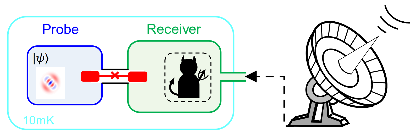 The experimental sample is composed of a superconducting qubit coupled with two microwave resonators (as shown in Fig.1). One with a long lifetime is used as the probe cavity, and the other with a short lifetime is used as the receiver cavity. In the experiment, the state of the probe cavity is prepared into the superpositions of quantum states with different photon numbers. Then the receiver cavity is used to receive the microwave signal from the external source. Finally, via the interaction between the two cavities, the relative phase of the superposition state in the probe cavity will accumulate, through which the intensity of the microwave signal in the receiver cavity can be measured. Meanwhile, in the experimental process, in order to fight against the decoherence effect of the superposition state in the receiver cavity caused by the environmental noise, they used the approximate QEC operations and tracked the number of error occurrence, thus greatly enhancing the measurement sensitivity (as shown in Fig.2).