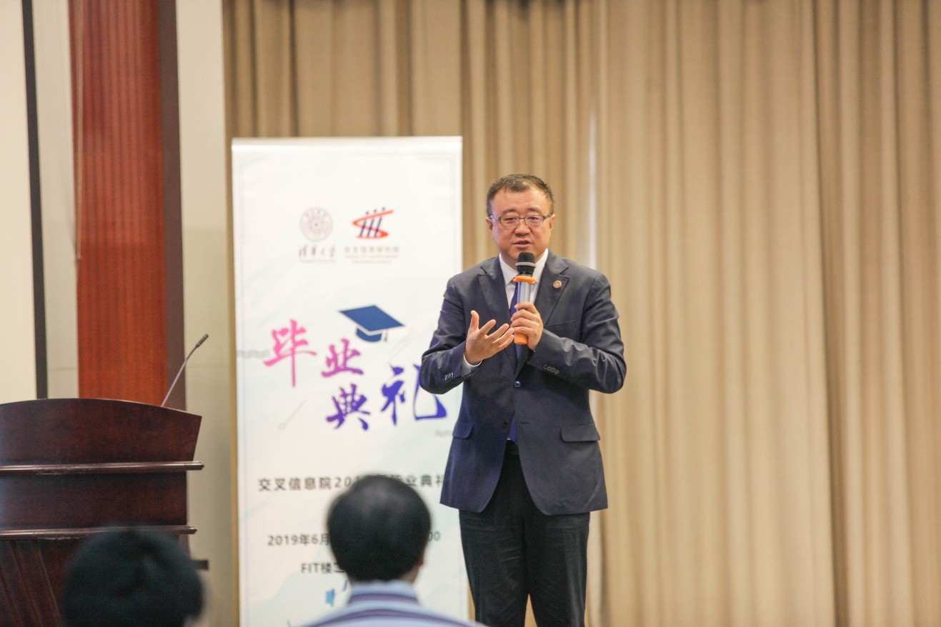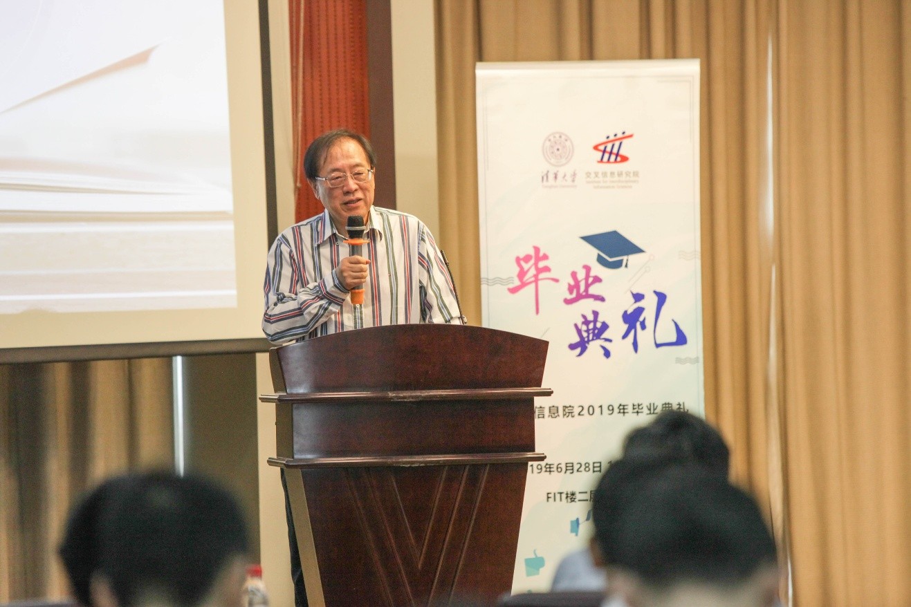 IIIS Commencement 2019 took place at the Lecture Hall, FIT Building, on June 28, 2019. Prof. Bin Yang, Vice President of Tsinghua University, Prof. Andrew Chi-Chih Yao, Dean of IIIS, Prof. Longbo Huang, Director of Tsinghua Xuetang Artificial Intelligence Program (Zhi Class), were invited to attend the commencement, with the presence of IIIS faculty, all the graduates of 2019 and some students' parents. Prof. Ran Duan, Director of YaoClass, hosted the commencement.