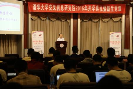 (By Shuai Sun) On September 13, 2015, IIIS Opening Ceremony of the academic year 2015/2016 took place at the Lecture Hall, FIT Building, with the presence of Prof. Andrew Chi-Chih Yao, Dean of IIIS, Prof. Xiaoping Zhang, Dean of Graduate Affairs Office, and Peng Su, Vice Dean of Academic Affairs Office. The attendees also included 30 freshmen, 25 new graduates and IIIS faculty. The ceremony was hosted by Xiamin Lv, General Office Manager.