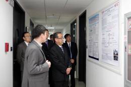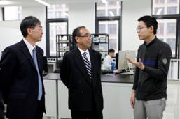David Mong and other distinguished guests paid an inaugural visit to some high-tech laboratories in the building after the unveiling of a new plaque for Mong Man Wai Building of Science and Technology. Prof. Luming Duan, IIIS CC Yao Professor and vice chairman of Center for Quantum Information, presented the construction planning of IIIS labs in Mong Man Wai Building covering Network Systems Lab, Clean Room and Superconducting Lab, etc. Jining Chen and David Mong expressed their concern about the labs in the conversation with IIIS teachers and students.