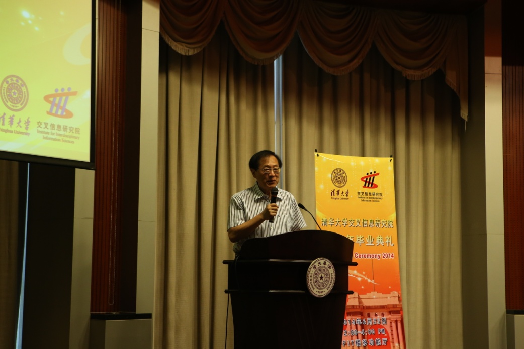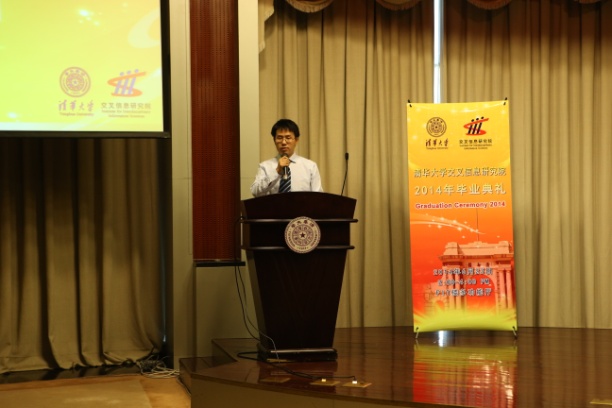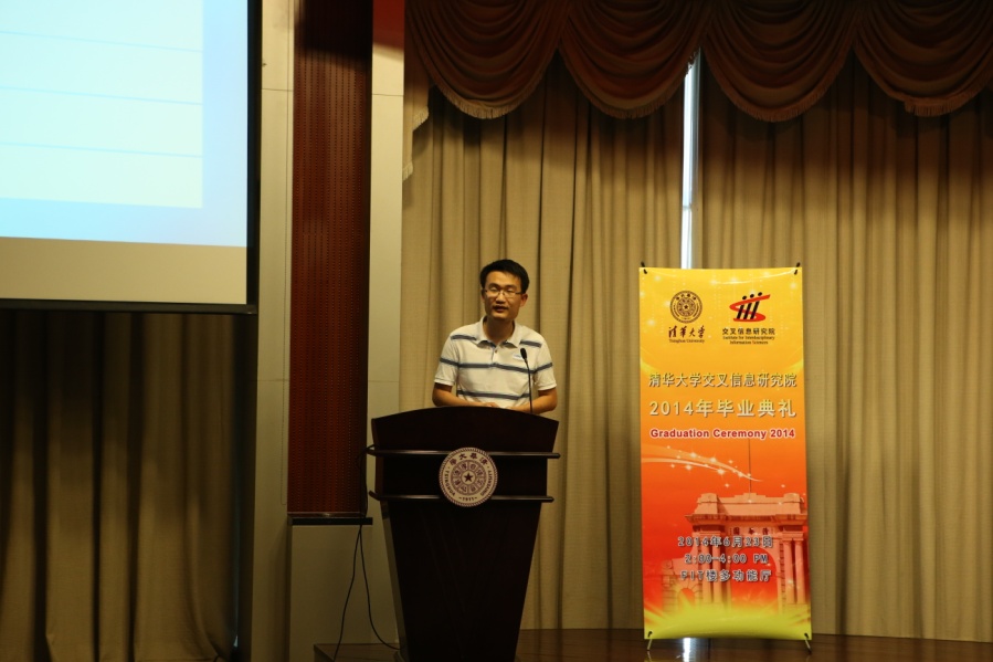 (By Shuai Sun) IIIS Commencement Ceremony and Yaoclass Meeting 2014 took place at Lecture Hall, FIT Building, on the afternoon of June 23, with the presence of Prof. Andrew Chi-Chih Yao, Dean of IIIS, Prof. Li Zheng, Director of Academic Affairs Office, Tsinghua University, and Wenxue Zhang, Vice Director of Academic Affairs Office. IIIS faculty, all the graduates and some of the student parents also attended the ceremony.