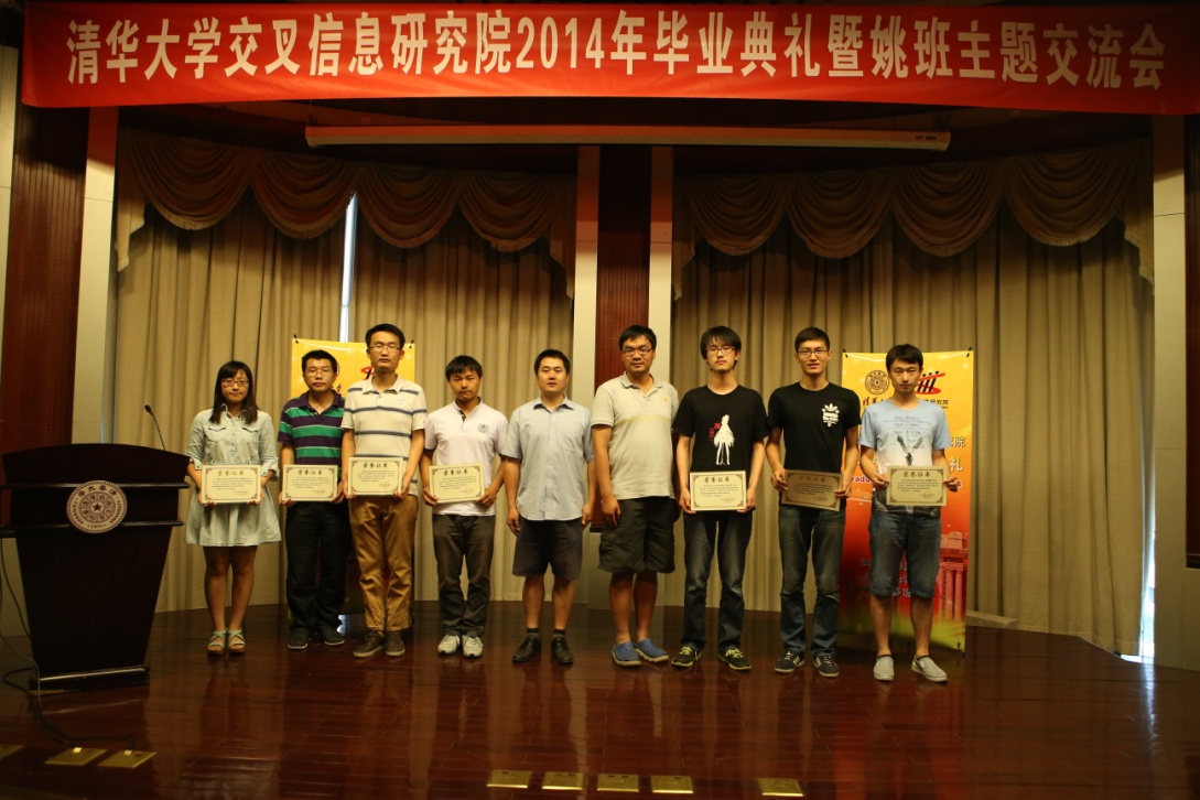 In Yaoclass Meeting 2014, IIIS excellent graduates, Yao Award winners and outstanding student leaders received public recognition. Chengtao Li from Yao Class 00 and Chenggang Wu from Yaoclass 60 shared their experience at Yao Class and made their resolution to bear self-discipline and social commitment in their future life.