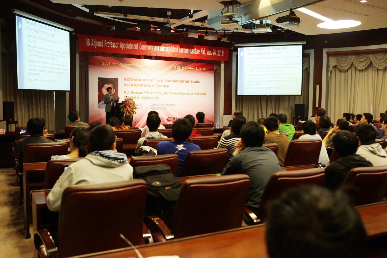 April 26, Prof. Raymond Wai-Ho Yeung, Adjunct Professor and Director of the Internet Engineering Programme of The Chinese University of Hong Kong visited IIIS and gave a Distinguished Lecture on “Refinement of Two Fundamental Tools in Information Theory”. Dean Prof. Andrew Chi-Chih Yao hosted the lecture at the Lecture Hall, FIT Building.