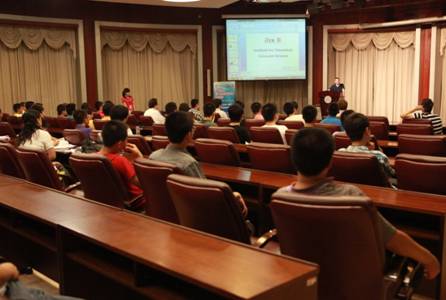 In the evening, the “Yao Class Enrollment Talk 2010” hosted by Pilot CS Class Affairs Assistant Ms. Yan Zhang, took place at the Multifunctional Hall of FIT Building. Assoc. Prof. Xiaoming Sun, Assis. Profs. Christophe Tartary, John Steinberger, Periklis Papakonstantinou and postdoc Kevin Matulef introduced Yao Class and its curriculum while encouraging talented freshmen to join Yao Class. They also took questions from applicants about courses and career opportunities. The international cultivation model of Yao Class impressed everyone present at the Talk. After the Enrollment Talk, more application forms were submitted.