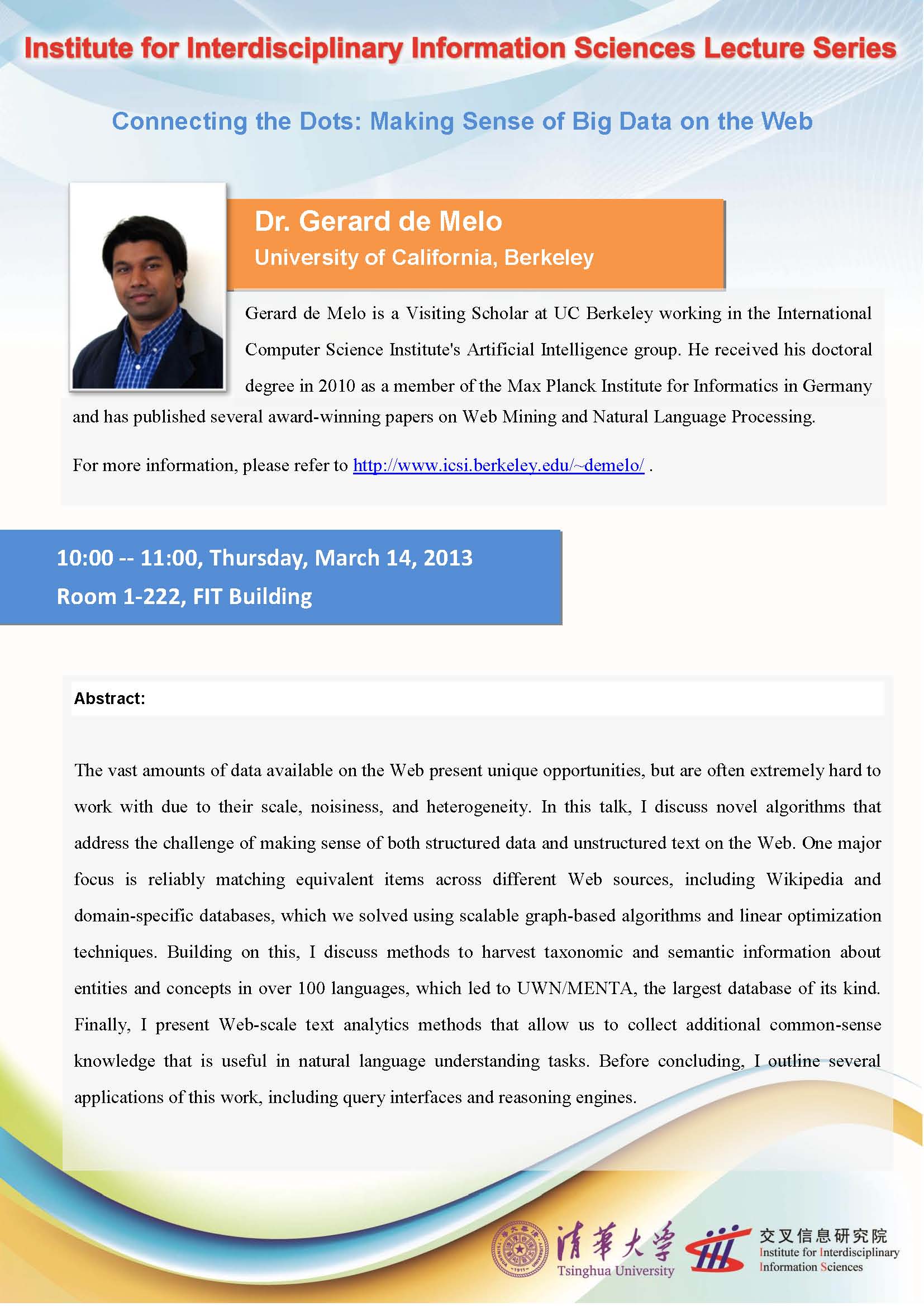 演讲人 <a href=' //www.icsi.berkeley.edu/~demelo/' target='_blank'>Gerard de Melo</a> UC Berkeley 时间 2013-03-14 10:00-2013-03-14 11:00