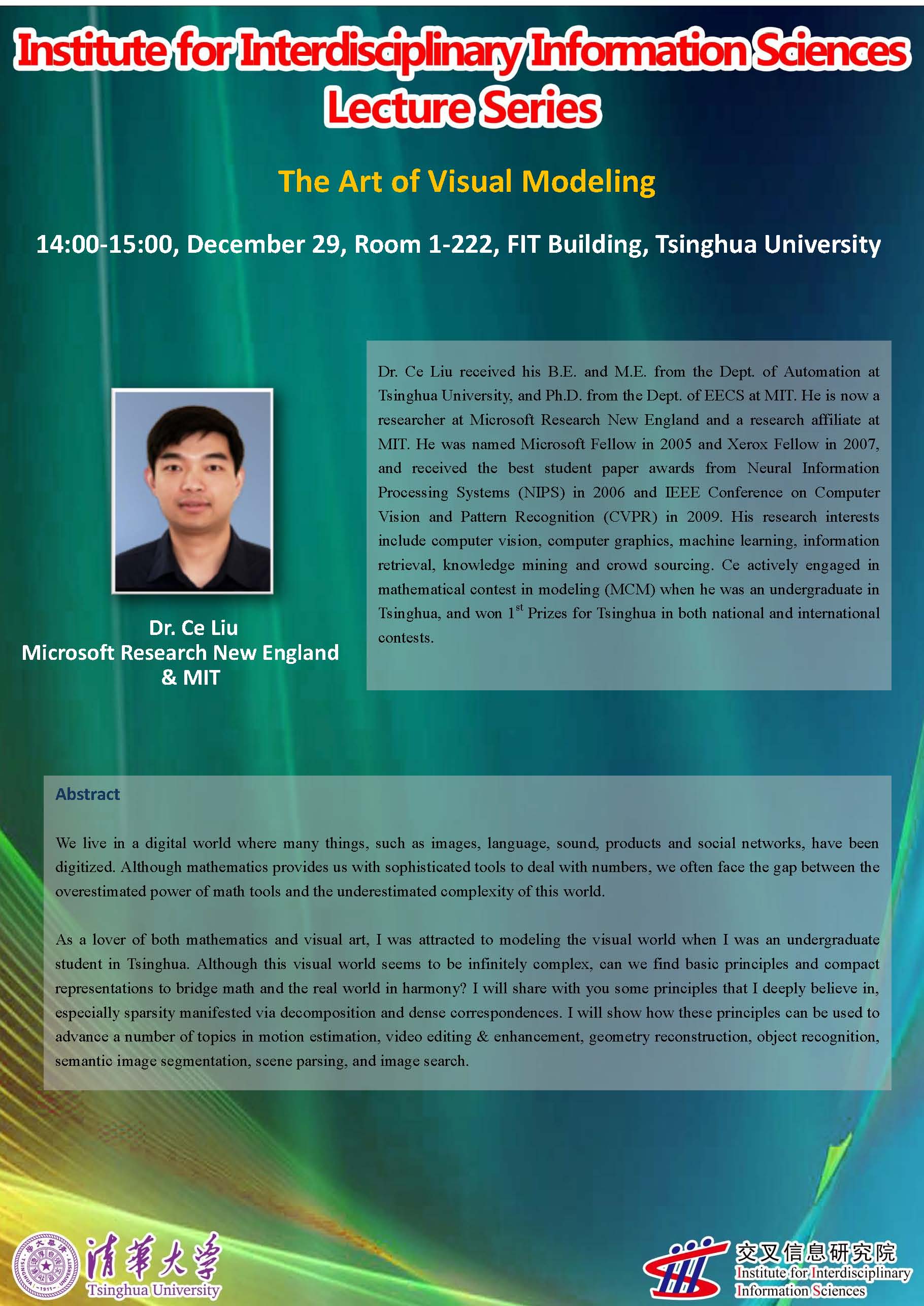 演讲人 <a href='//research.microsoft.com/en-us/um/people/celiu/' target='_blank'>Ce Liu</a> Microsoft Research New England & MIT 时间 2011-12-29 14:00-2011-12-29 15:00