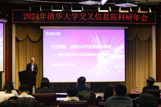 紫光集团联席总裁陈杰以“守正创新:迎接AI时代的机遇与挑战”为题,介绍了新紫光体系,以及紫光集团包涵芯、云、网、边、端在内的产业布局。陈总也着重分享了紫光集团在半导体芯片、人工智能发展中的思考,提出亟需提升端侧AI技术优势,开发AI算力架构、软件栈等发展方向。