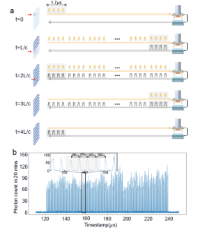 量子网络和量子中继是未来实现超大规模量子计算,洲际量子通讯,全球量子互联网,超高精度量子精密测量的必经之路。量子网络规模扩展的难点在于,网络节点之间通过光子干涉产生预报式纠缠所消耗的时间必须小于量子网络节点的相干时间(即“信道效率”大于1),在这种情况下量子网络才能通过纠缠交换的方法实现规模扩展,以及有效利用多对(大于等于2)远距离量子纠缠。因此,信道效率大于1是量子网络扩展的条件。目前,信道效率大于1只能在实验室规模(光纤长度约为10m)的量子网络上实现。对于城际规模(光纤长度大于10公里)的量子网络,由于光在光纤中的传播时间限制,单次纠缠尝试所消耗的时间很长(约为百微秒量级)。因此而导致的低实验重复率极大地限制了远距离纠缠的产生速率,所以目前全世界已经实现的城际距离量子网络最高的信道效率也小于0.01。