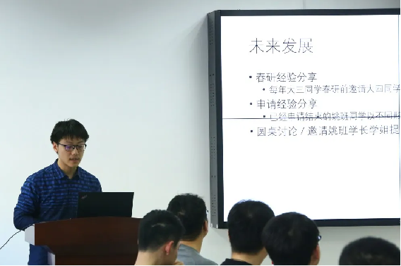 姚班2023级本科生徐国玮、姚班2021级辅导员谢添乐,以及姚班2021级本科生、清华特等奖学金得主叶卓睿分别以“低年级同学如何做好科研实践”、“如何做好班级文化建设与传承”、“学生互助成长经验”为题,分享姚班建设经验。