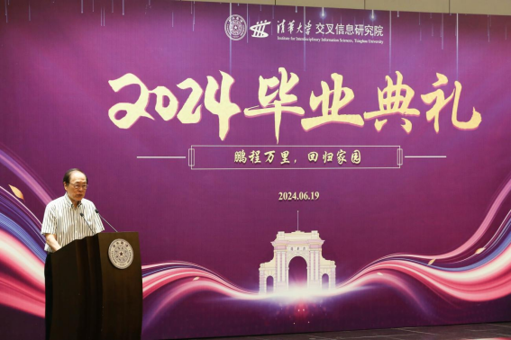 最后,在热烈的掌声中,姚期智院长上台致辞并寄语全体同学。姚先生表示,交叉信息院历经十多年建设,已走到世界前沿,产出了亮丽的成果。同学们在茶园受到了最好的教育和培养,应该对未来的发展信心满满。他衷心祝福同学们根据自己的兴趣选择职业发展道路,发挥所长,实现理想。他也嘱托同学们要找机会回报滋养大家的土地,为社会和国家做出贡献。