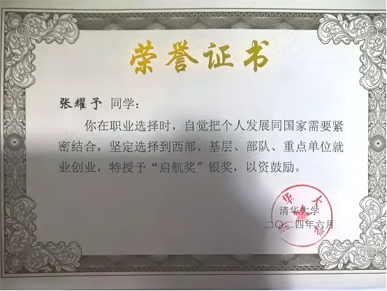 张耀予荣获“启航奖”银奖