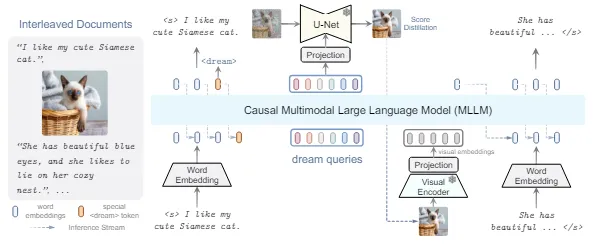 弋力研究组提出了多模态大型语言学习框架DREAMLLM,首次实现了兼具多模态内容创作和理解的功能且相互促进的通用多模态大模型,并且是第一个原始数据级的完全自回归多模态大模型。该工作由弋力研究组与熟女