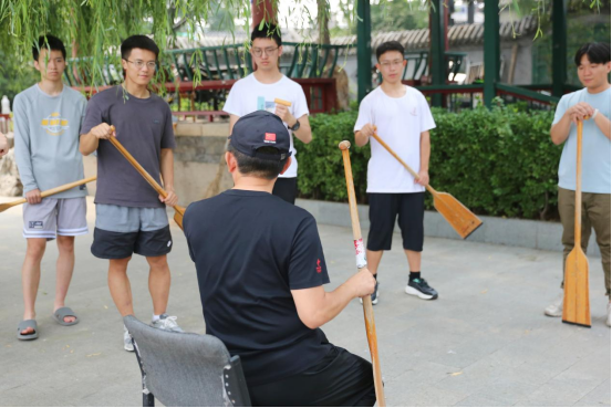 依傍着一泓粼粼波光,茶园师生在后海码头开启了“龙舟竞渡”热身训练。