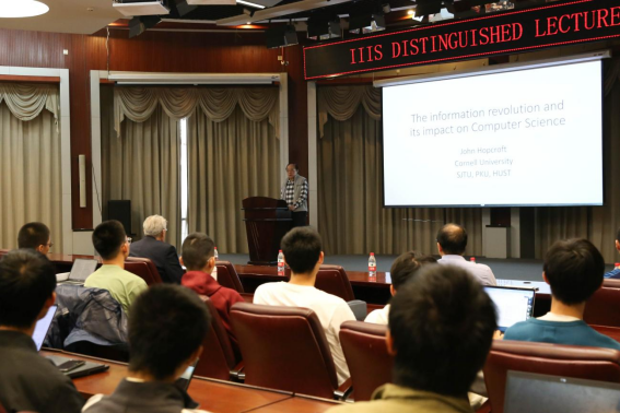 姚期智院长首先介绍了John Hopcroft院士在计算机科学领域研究、人才教育培养、推进政策改革等方面的卓越贡献,随后他解读了讲座主题的缘起。“John可以说是计算机科学领域的创始人之一,”姚院长在开场辞中说,“他撰写的理论计算机入门教材一直被奉为经典。七十年代,他的算法著作更是推动了人们对算法的认知,为后续研究奠定了基础。五十年后,计算机科学迎来巨变,John再度一马当先,并将向我们讲述他对信息革命及其对计算机科学影响的理解。”
