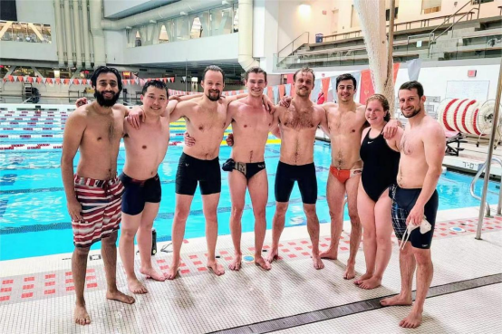 图:戴言与MIT水球队队员合影