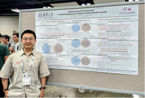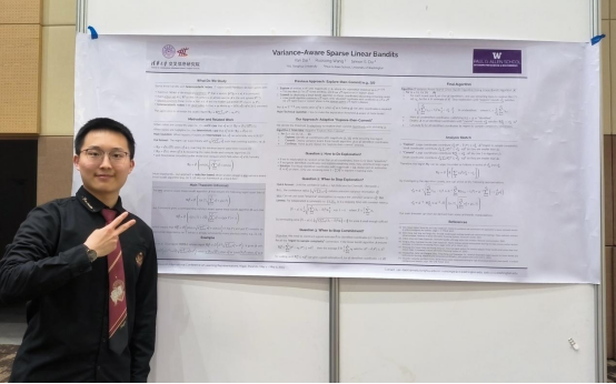 交叉信息院本科生戴言已抵达会场,展示自己强化学习理论的最新科研成果,这篇成果首次在稀疏线性老虎机问题中实现了最优常数级别的遗憾值保证,而这只是他科研经历中的冰山一角。