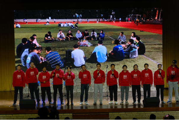 茶园辅导员们献上合唱节目《如愿》,并邀请2020级毕业班同学共同上台合唱。现场氛围再度冲向高潮。