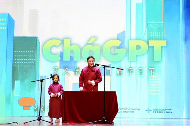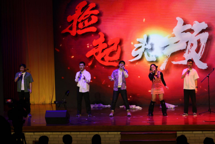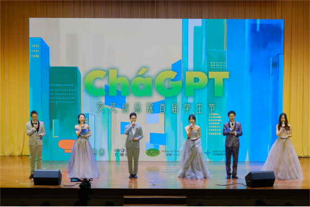 学生节最后,2019级博士生李一苇,2022级博士生惠宇龙、毛嘉怡、孙立达,2023级博士生骆晗现场演唱学生节主题曲《人机迷雾》,紧扣CháGPT这一题目,引发听众共同思考人类与信息智能的关系和未来。