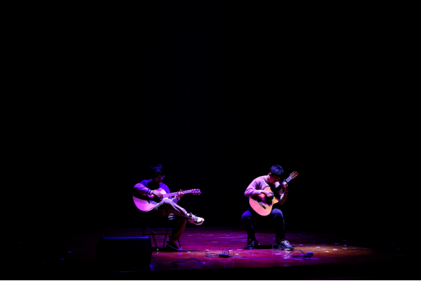 接着,2023级本科生秦祉恺与钱海天带来灵动优雅的吉他曲《Flower Dance》,对弹如同对谈,令听众们沉浸其中。