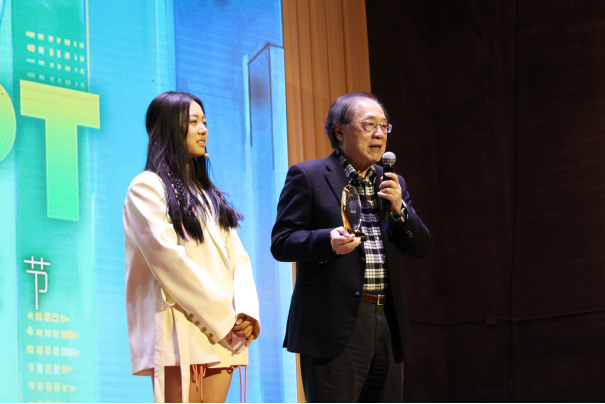 随后,首届学生节总导演、2022级博士生毛嘉怡代表学生节导演组将印有茶园首届学生节Logo,以及主创团队签名的纪念牌送给姚先生。大家感谢姚先生的付出,祝愿姚先生和储教授未来的生活如茶得水,并祝愿所有的观众茶风破浪,一往无前。