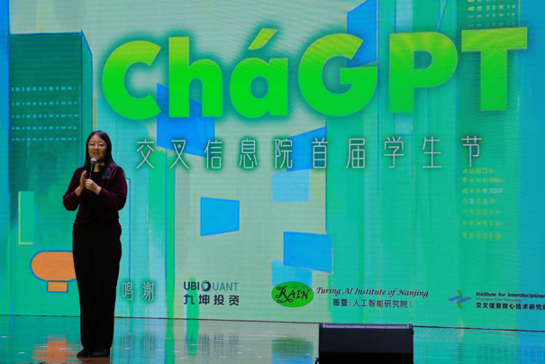 随后,贾珈教授代表计算机系党委致辞。她热烈祝贺交叉信息院首届学生节成功举办,并表示,学生节是美好、温馨、幸福的时刻。期待茶园人共同的学生节,成为大家人生最美好的回忆之一。