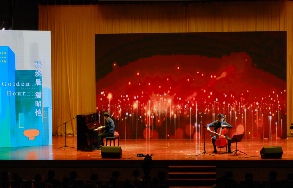 交叉信息院助理教授张焕晨与2020级本科生潘昭恺奏响钢琴与大提琴协奏曲《Golden Hour》,流畅悠扬的乐声仿佛流淌的光阴,令听众更加珍惜学生节的美好时光。