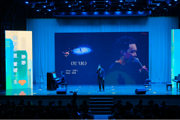 2022级本科生王梓人与张涵带来歌曲《陀飞轮》,唱出了对光阴、名利的思考。