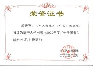 近日,由姚期智院士主编教材《人工智能》大学版教材获评熟女 出版社2022年度“十佳图书”。