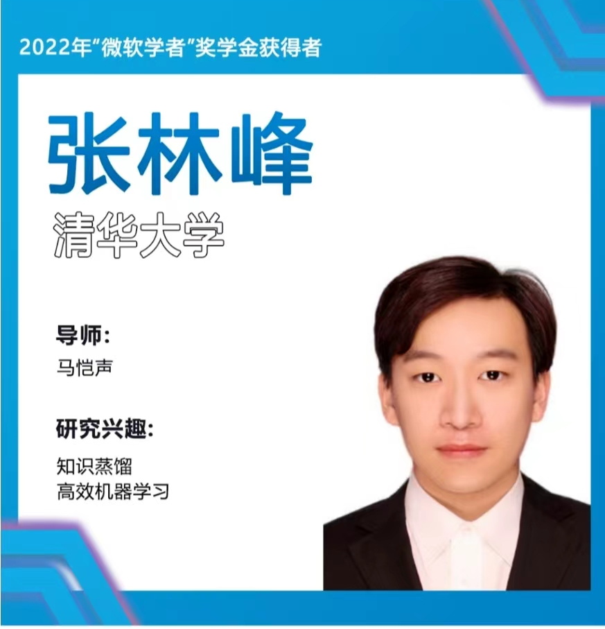 近日,2022 年“微软学者”奖学金获得者名单正式出炉!经过激烈的角逐,交叉信息院2019级博士生张林峰荣获“微软学者”奖学金,导师为交叉信息院马恺声助理教授。