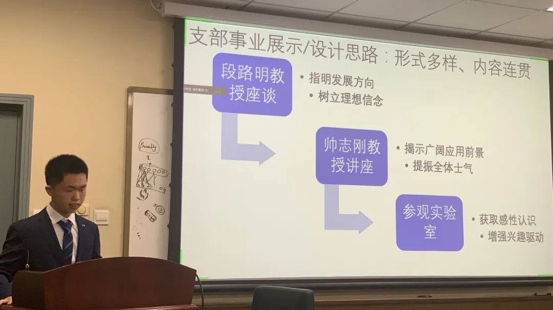 同样是远在海外,智90团支书赵和旭同学介绍了其支部过去一年的建设成果。平时的工作中,智90团支部广泛调研同学们的需求,邀请了多位嘉宾经验分享会,成功吸引了全院上百名同学参与,令大家印象深刻。