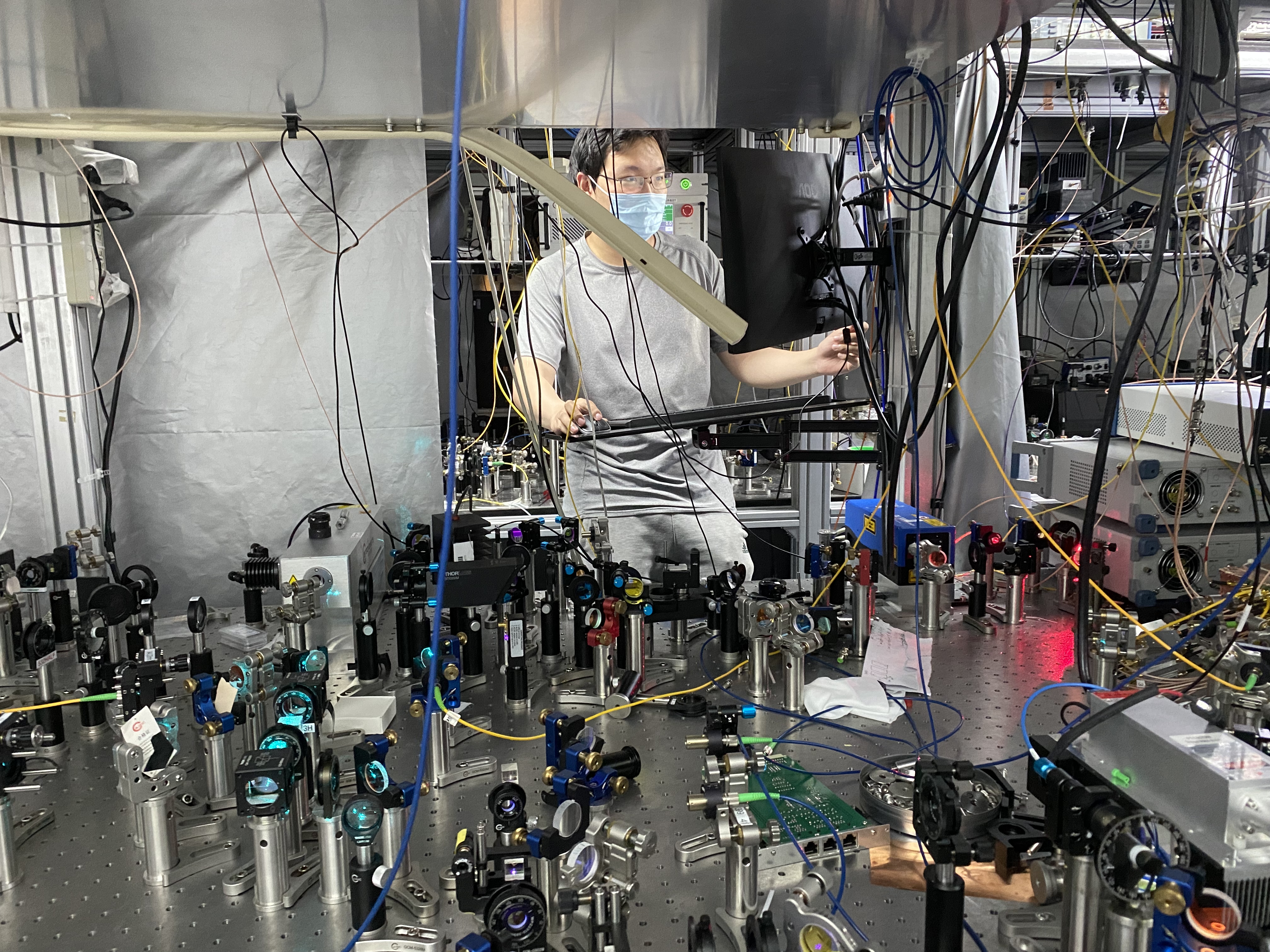 实验室里,同学们在做好疫情防护的同时,不停下学习科研的脚步。坚守在物理实验室的黄传薪同学表示“虽然疫情条件下环境比较艰苦,但是我们相信,目前的困难只是暂时的,我们一定会打赢这场疫情防控清华保卫战,我们会坚持科研和学习,为我国量子计算事业的发展贡献自己的力量。”