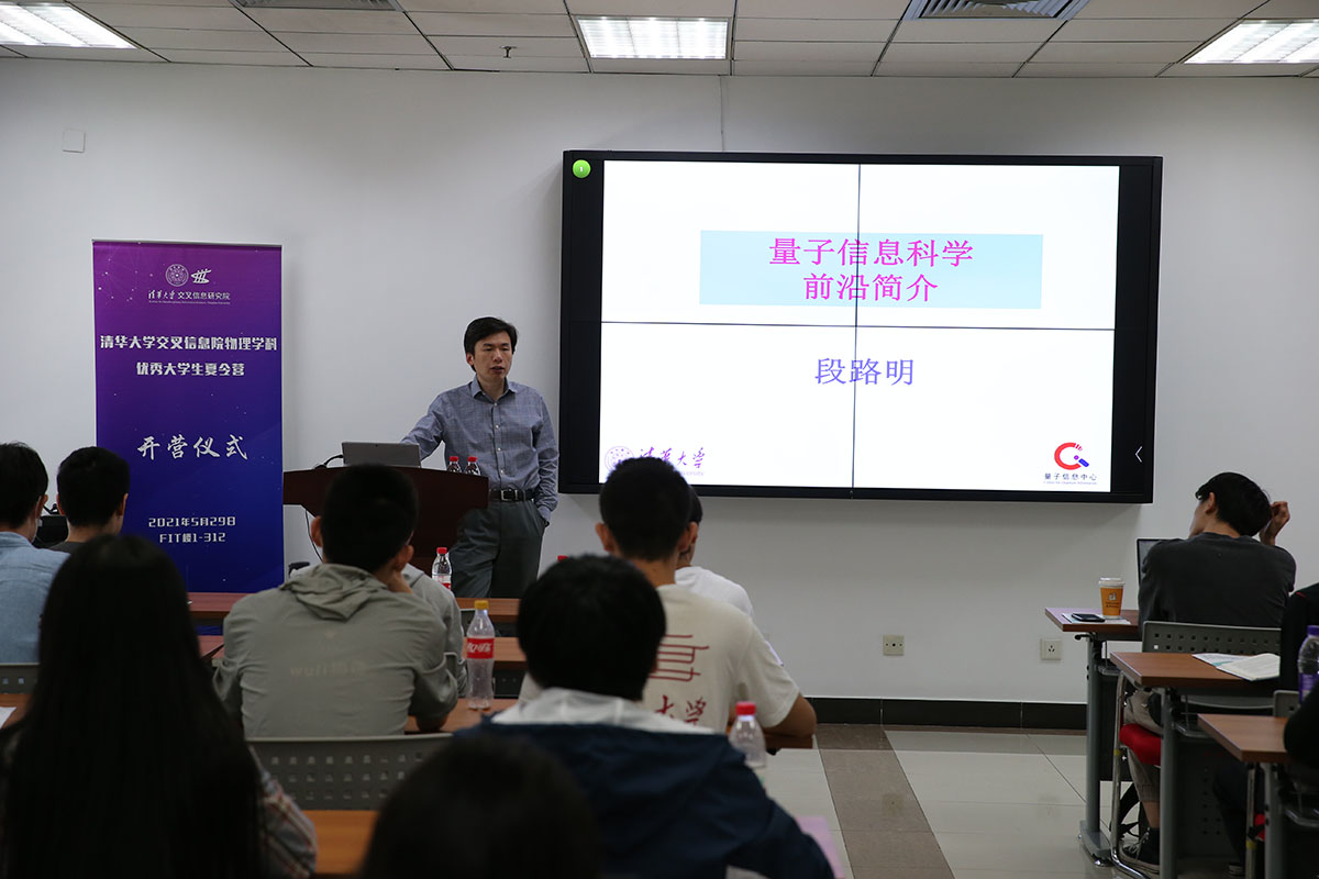 5月29日,物理学科夏令营线下正式开营。段路明教授致开营辞,并作关于量子信息科学前沿简介的报告。马雄峰、孙麓岩、邓东灵、濮云飞、吴宇凯、徐勇等6位教授聚焦量子信息科学、基于超导的量子计算实验研究、量子信息与计算、量子人工智能、原子量子中继和离子量子网路、拓扑凝聚态物理等主题,先后为营员们作学术报告。