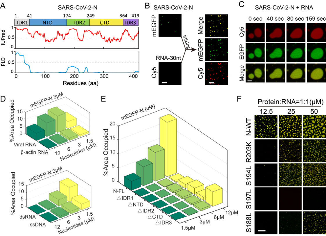 图1. SARS-CoV-2 N蛋白相分离特性的鉴定