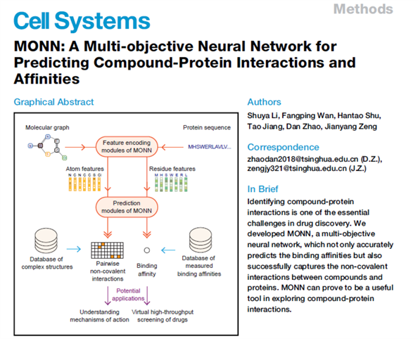 近日,交叉信息院曾坚阳研究组发现蛋白质-小分子间局部共价相互作用和结合强度的深度学习模型,该成果论文“MONN: a multi-objective neural network for predicting compound-protein interactions and affinities”发表于Cell Systems期刊,同时被计算分子生物学研究国际会议接收(RECOMB, 2020)。