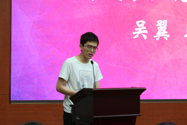 李卓然代表全体研究生新生发言。他表示,在国际国内形势复杂的今天,更应该坚定科研报国的志向,努力在关键领域实现突破,努力在卡脖子技术上实现长足的时间积累与沉淀,希望与所有同学一起在计算机科学与物理学的各个分支领域披荆斩棘、乘风破浪。