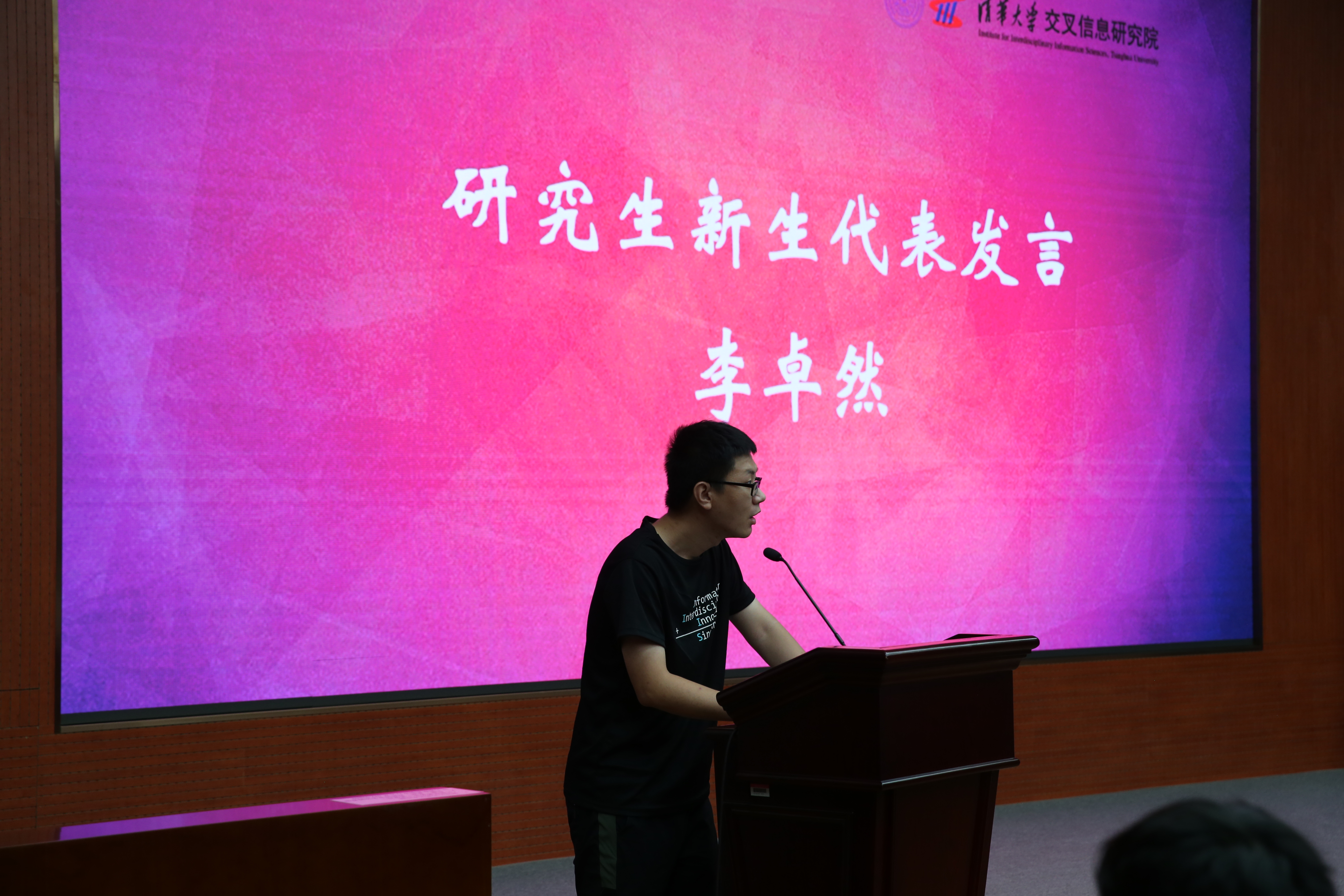 交叉信息院。姚先生感言交叉信息院从零开始,经过十年的发展,不断提升,有信心为同学们提供最好的教育。姚先生介绍了交叉信息院师资遴选的高标准,重点引荐本学期新入职的四位年轻教师,其中包括两位毕业于交叉信息院的院友。姚先生表示,交叉信息院的宗旨是激发同学们真正的潜能所在,希望同学们能在这里找寻高级的快乐,不单是个人的享受,而是更高级的对艺术的欣赏、对文化的品鉴、对社会的贡献、对中华民族的建设。姚先生寄语全体新生,期待大家在交叉信息院的学习生涯里,把人生素养提升到更高的层次。