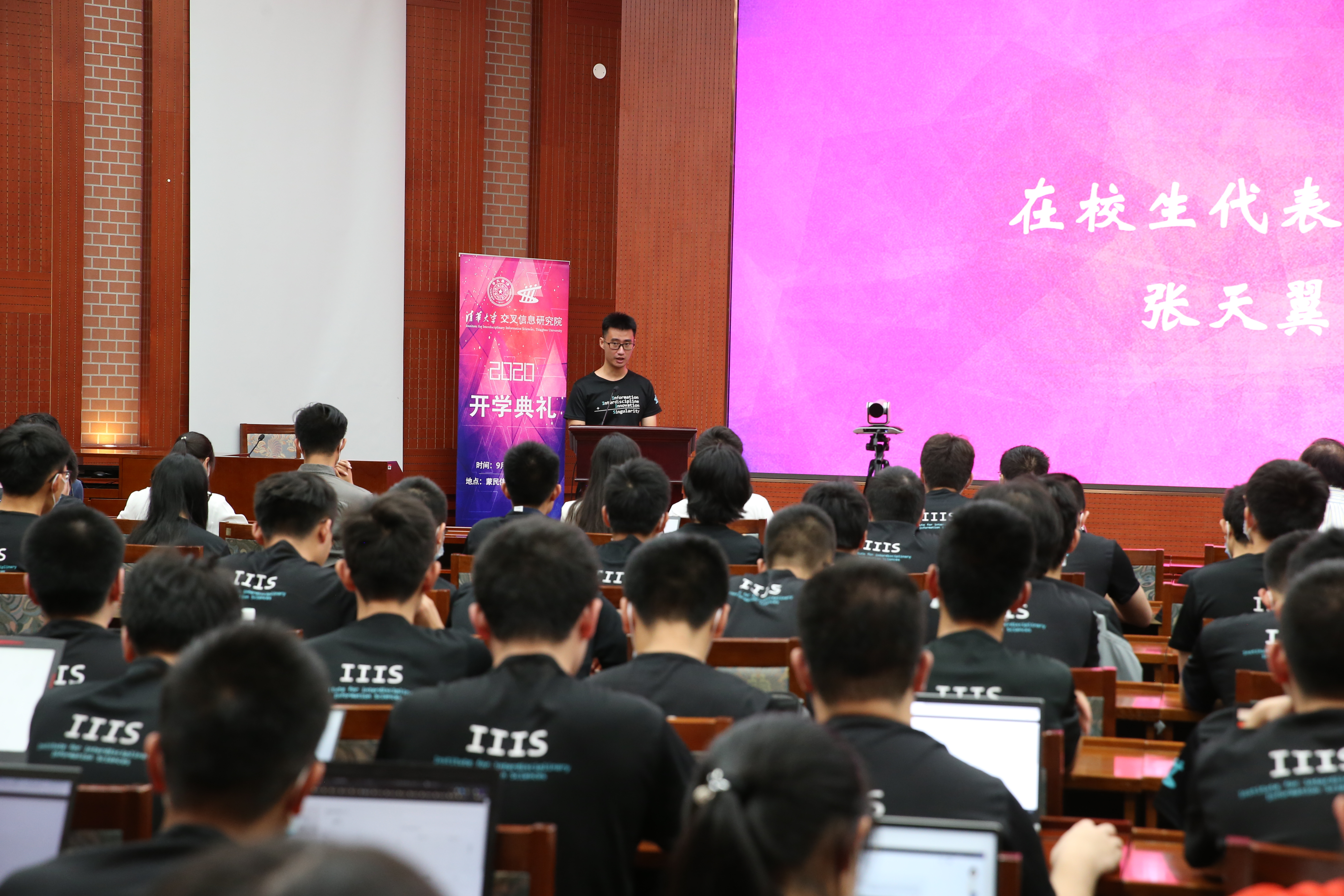 交叉信息院讲席教授储枫先生,以及交叉信息院2020级全体新生、教师代表、在校生代表共同参加典礼。此外还有近百名新生亲友通过线上直播见证此次典礼。典礼由2020级智班班主任房智轩助理教授主持。本年度共有76名本科生和 54名研究生正式加入交叉信息院大家庭。
