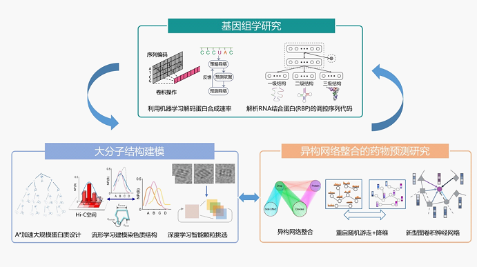 我院曾坚阳研究团队主要承担的“基于机器学习的生物数据分析和药物发现”项目利用近年来蓬勃发展的人工智能和机器学习技术,解决了生命科学和药物研发领域的一系列重要问题。其中,项目所开发的药物靶点重定位模型,能够有效整合大规模异构网络数据,为药物作用靶点提供精确预测,大大缩短了新药的研发时间。此外,项目在基因组学研究与大分子结构建模领域也取得了一系列重要的成果,开创性地通过深度神经网络整合RNA多级结构,准确解析RNA结合蛋白的调控代码,开创性地通过贝叶斯推理和流形学习方法整合物理能量与影像测量,实现基因组三维结构的准确建模。这些成果一方面为生命科学领域的基础研究提供了有效工具,另一方面也对人工智能和生物医药领域的合作和发展起到了重要的意义和深远的影响。该项目的合作完成单位还包括熟女