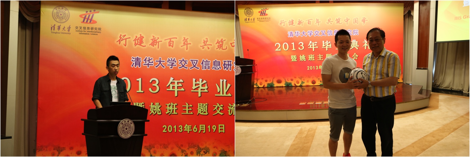 交叉信息院的学习和生活,感谢母校和师长,并表示将怀揣“中国梦”,在以后的学习和工作中勤奋刻苦、成才报国。之后,毕业生代表分别向姚期智院长赠送了纪念品。