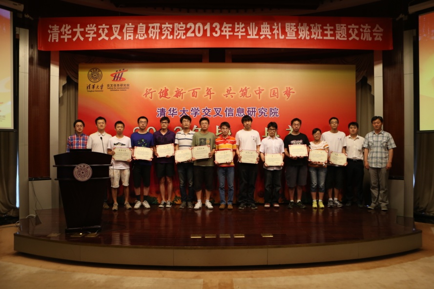 优秀毕业生、2012-2013年度“姚奖学金”(Yao Award)获奖者及优秀学生干部。袁驷副校长、姚期智院士、张文雪老师和张松海、陈震、王永才、华强胜等四位班主任老师分别为获奖同学颁发了荣誉证书。
