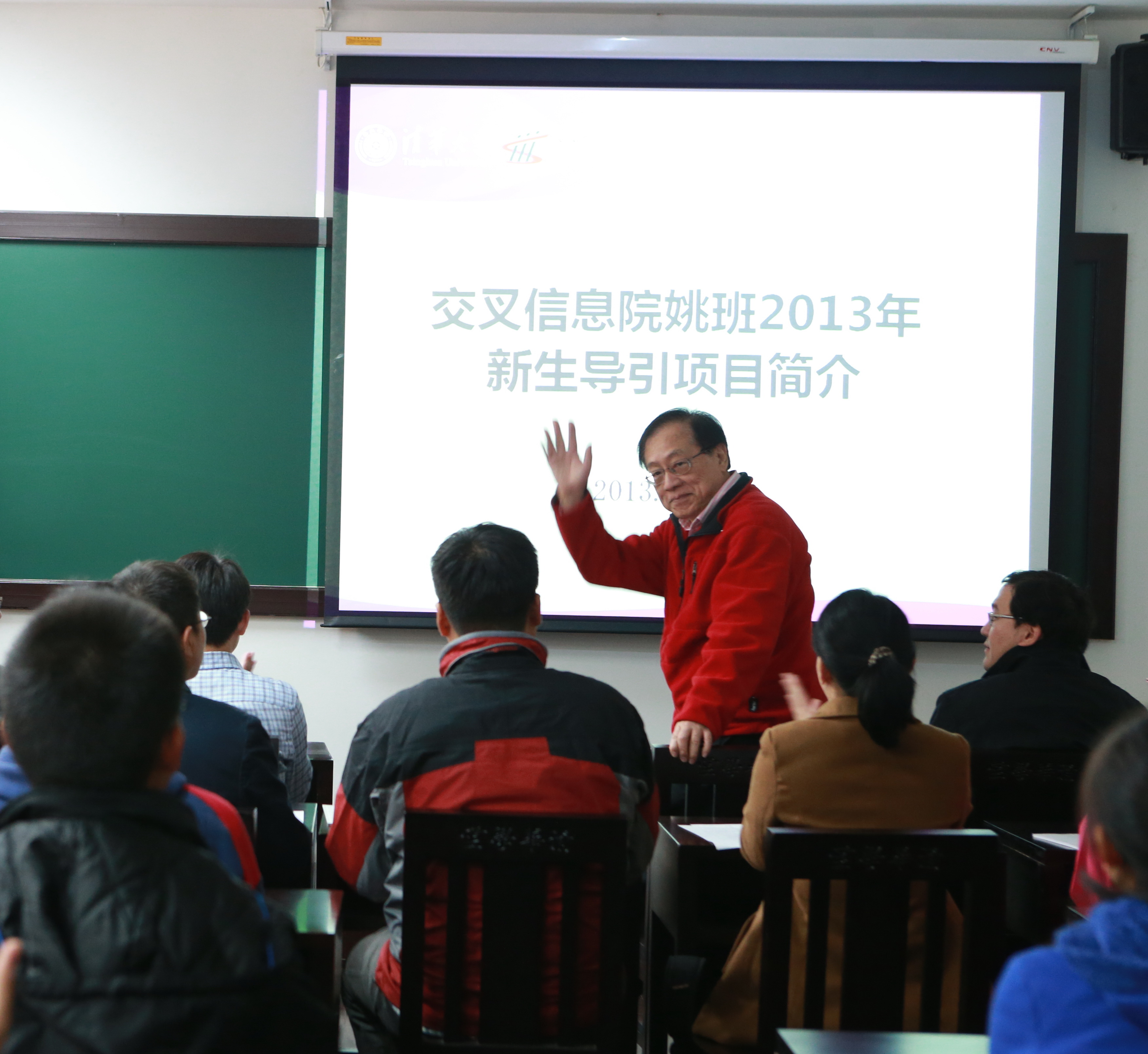 (通讯员 孙帅)2013年10月24日下午,交叉信息院举办2013年姚班新生导引项目启动仪式。交叉信息院院长、姚班首席教师姚期智院士,姚班项目主任黄隆波助理教授,新生班班主任、辅导员、2013年新生导引项目指导教师以及计科30班全体同学共同参加了此次启动仪式。
