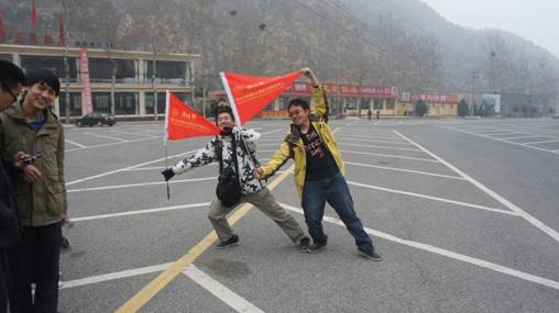 第一站便是青龙峡,古名“苍龙峪”,古人曾赋诗于此:“苍龙日暮还行两,老树春深更着花”。传说苍龙峪历年夏季水量大增,溪水奔流不息,老龙行雨所致,加之峪内植被好,山色苍茫,故名“苍龙峪”。青龙峡果然名不虚传,虽是早春,不能看到淙淙流水和成荫绿树,但也感受了万般生灵的隐隐复苏。要数舒展胸襟莫过于青龙峡大坝,正是应了“无限风光在险峰”这句话,取道“通天洞”,拾级而上,登临坝顶,滚滚流水尽收眼底,我们似乎也和群山并立,远观灰绿色的景致,不禁叹服造化的鬼斧神工。
