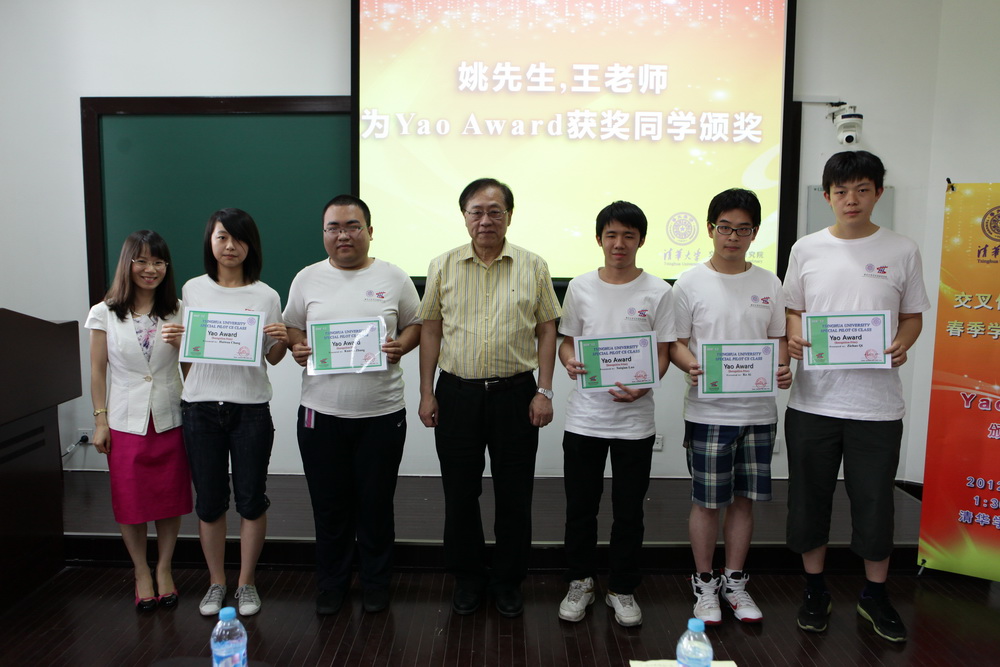 姚先生、王老师与Yao Award优胜奖获得者合影(常惠雯、张昆玮、罗穗骞、艾克、漆子超)