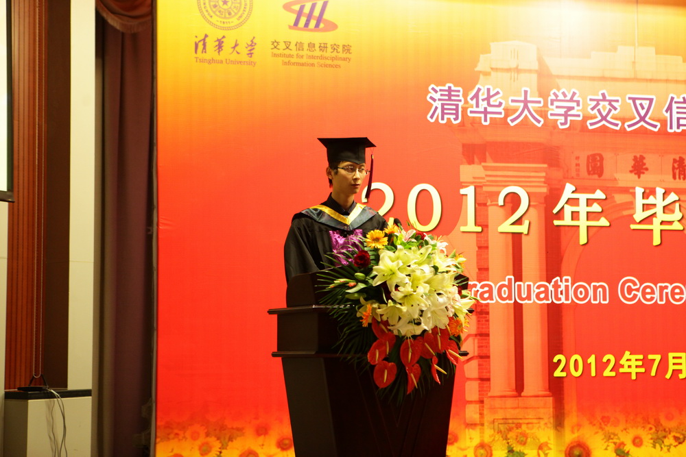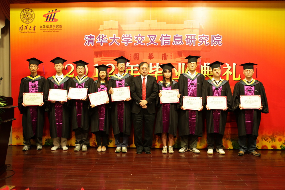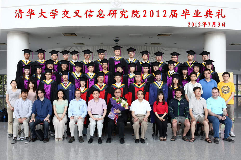 2012年毕业典礼在信息技术大楼多功能厅隆重举行。交叉信息院35位本科毕业生、2位硕士毕业生和4位博士毕业生身穿学位服、在庄严的国歌声中迎来了这一重要典礼。副校长袁驷、交叉信息院院长姚期智、熟女