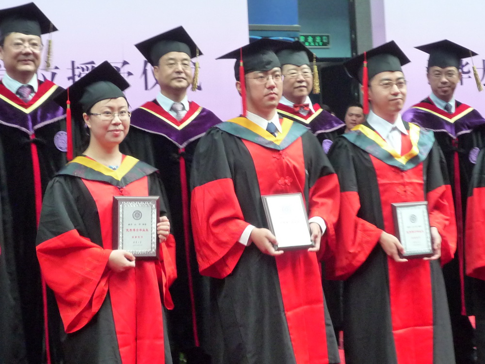 贝小辉(前排右一)接受党委副书记韩景阳颁发的优秀博士毕业生奖牌