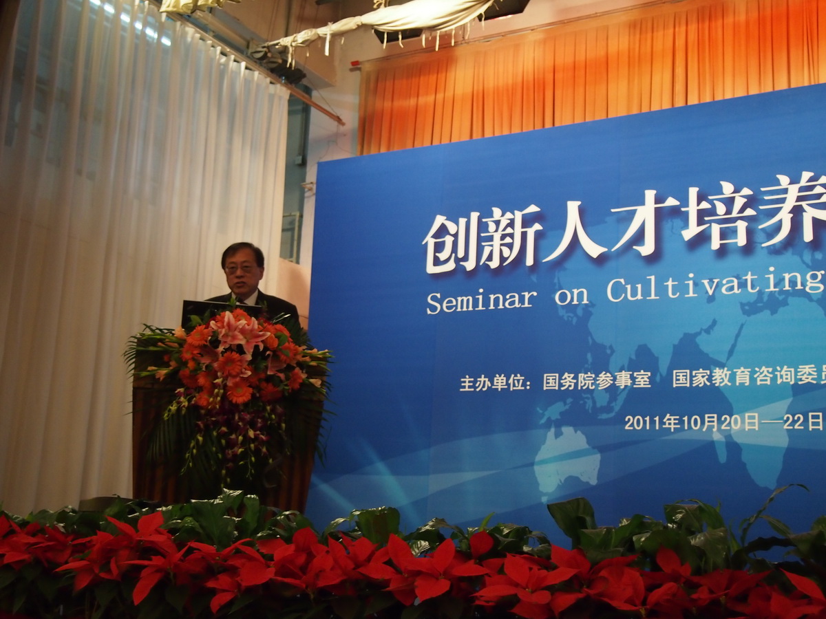 2011年10月20日上午,由国务院参事室、国家教育咨询委员会(创新人才组)、创新人才教育研究会主办的“创新人才培养工作座谈会”在友谊宾馆贵宾楼多功能厅拉开序幕。熟女