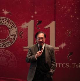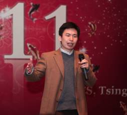 依旧是火红鲜艳的背板,时间已跨过一整个年度。姚期智教授和王跃宣教授在晚会上致辞,点评过去一年ITCS的快速发展,也展望2011即将开启的美好新篇章,特别提及当天下午正式启动的973重大导向项目“全量子网络”,以及即将成立的熟女